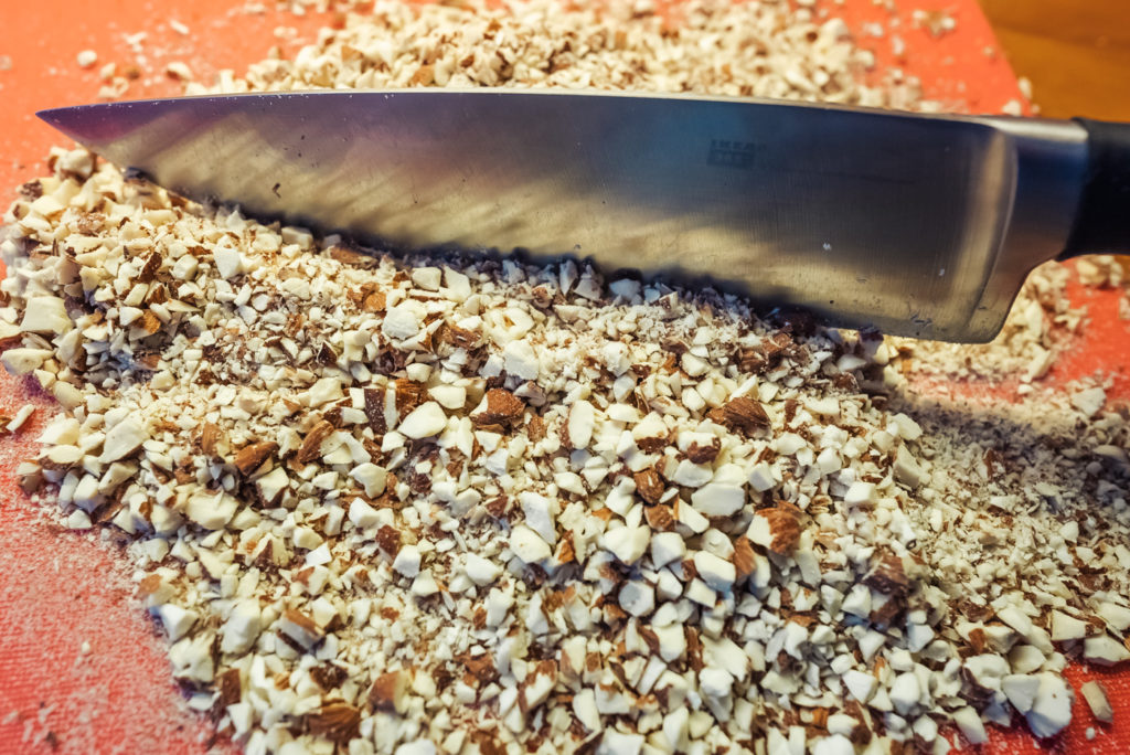 - Finely or coarsely chop the almonds (I kept them quite coarse). You can do this in a food processor or by hand.